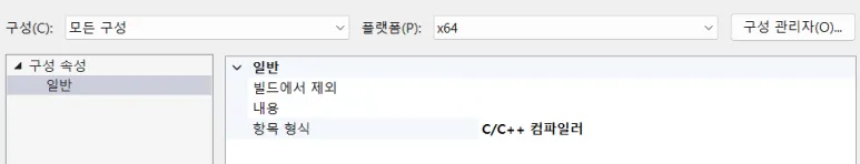 HeaderUnits.h 속성 > 일반 > 항목 형식: C/C++ 컴파일러